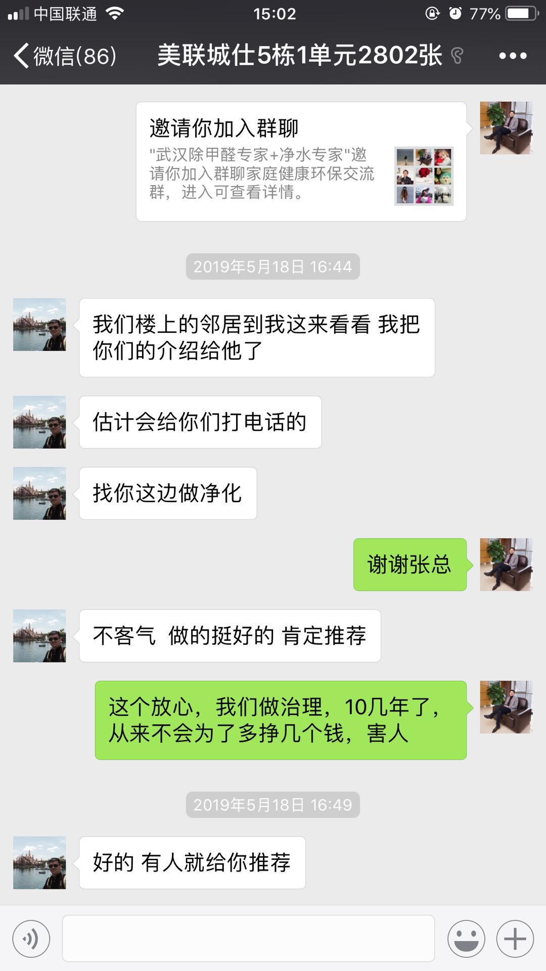 武汉美联城仕张先生室内除甲醛找到我们绿健君安,治理后很满意效果。还给我们推荐了客户! 相关推荐: 除甲醛系列产品 除甲醛常见问题 武汉绿健君安室内甲醛检测流程 武汉绿健君安室内甲醛治理流程 育才幼儿园除甲醛 58除甲醛客户评价 >>更多热门文章<< 上一篇:空气治理概念股 下一篇: