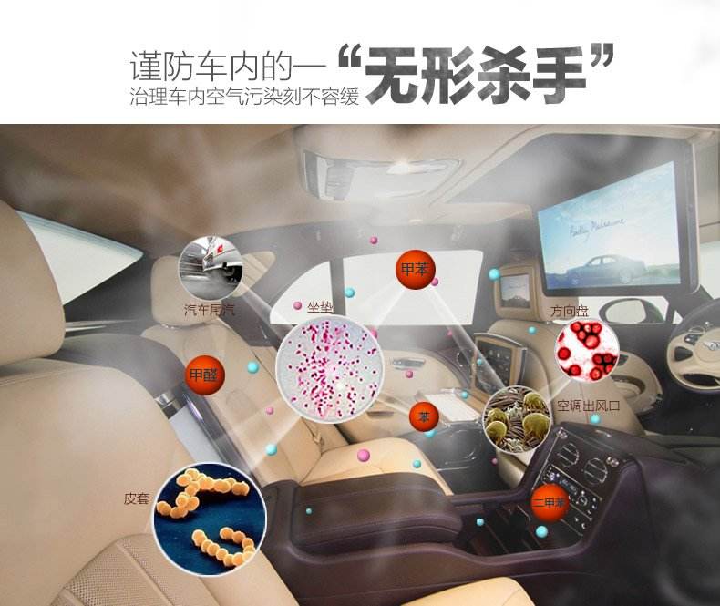 温馨提示:由武汉绿健君安公司自立研制出产的“新空卫兵”系列产品,从根本上去除甲醛、苯、TVOC等室内车内污染,确保车内的空气质量。让您健康作业、健康生活!