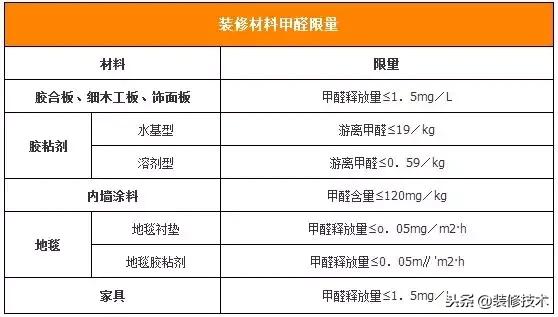 对于部分含有甲醛的装修材料,国家颁布的《室内装饰装修材料有害物质限量》对于其甲醛含量限量做出了规范。业主在选购各类材料时,建议对照甲醛含量限量,来决定是否购买。