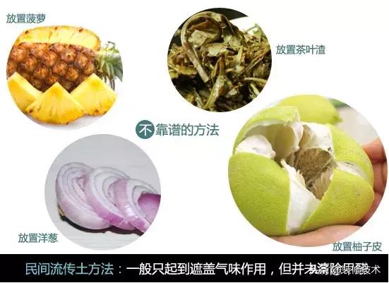 网上流传的很多清除新房甲醛的方法中,大多都是一点作用都没有的土方法。例如用茶叶渣、柚子皮、洋葱片、菠萝块等或者用白醋熏蒸整个房间。这些方法一般只起到遮盖气味作用,但并未分解清除甲醛。同样的,类似空气清新剂,更是利用其香味短暂地掩盖装修的异味,而不能清除甲醛。