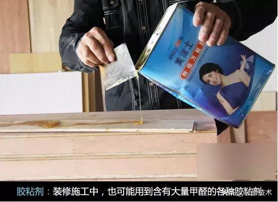 在装修中常常需要用到大量的胶粘剂,而如果使用的是白乳胶、801建筑胶水等水基型胶粘剂,往往容易造成室内甲醛超标。特别是107及801建筑胶水,用于批墙的腻子之中,面积广、用量大,是室内甲醛的另一个不容忽视的重要来源。